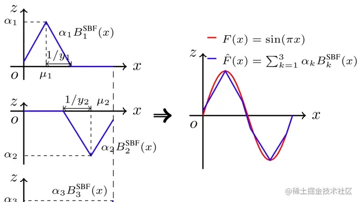 以图9为例,通过逐步添加左侧所示的辨识得到的三个基函数,可得到右侧对应的PWLNN,实现对示例中正弦函数的逼近。