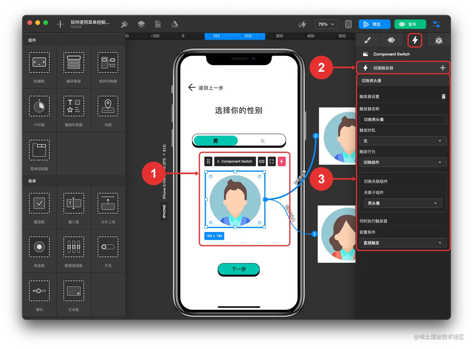 - 一个链接好两个组件的 组件切换器(下文简称“ 组件切换器 ”)