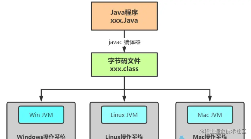 所以, Java 程序运行时相对来说还是高效的(不过,和 C++,Rust,Go 等语言还是有一定差距的),而且,由于字节码并不针对一种特定的机器,因此,Java 程序无须重新编译便可在多种不同操作系统的计算机上运行,即java的跨平台性。