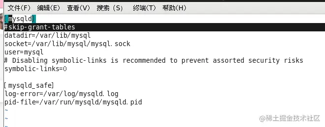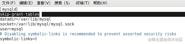添加一下skip-grant-tables #这行的意思就是设置空密码登录,毕竟密码都忘记了,不登进去这么改密码,哈哈