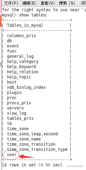 mysql库里面存储了我们的信息,进入到mysql数据库里,use mysql;