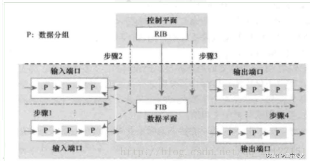 从功能角度来说,控制平面主要是建立本地的数据集合,即路由信息库(RIB)。控制平面是基于RIB创建转发表(也称转发信息库(FIB)),用于指导设备出入端口之间的数据流量转发。数据平面主要是根据RIB创建的FIB进行数据的高速转发,当然也有一些其他的服务功能。FIB为了保证转发行为和路由决策一致,需要在控制和数据平面之间进行镜像,因此FIB实际是两个平面之间的连接纽带。