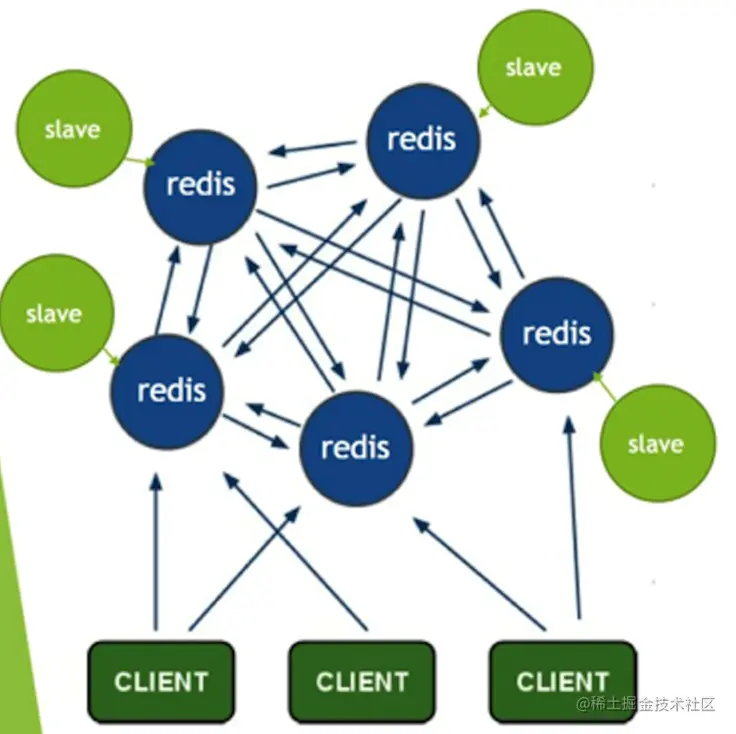 - 集群模式:查询有多个master和多个slave,写入也有多个master;