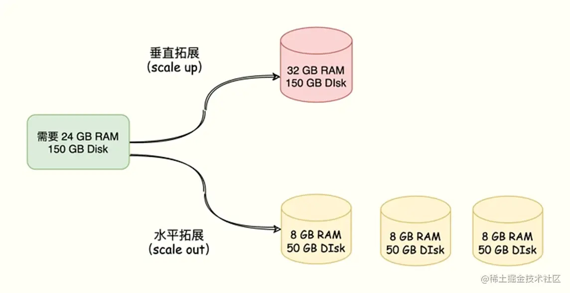 - 集群模式:支持垂直扩展,也支持水平扩展,有更好的灵活性,也可以支持更大的容量;