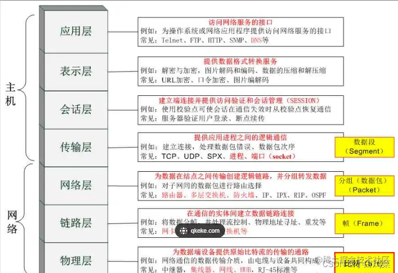 | 链路层 | 简称链路层,它依赖物理层提供的比特传输能力把数据组织成为有边界的传输单位,称为“帧”。链路层把来自网络层的数据组织成“帧”,然后再通过物理层向外发送。 |