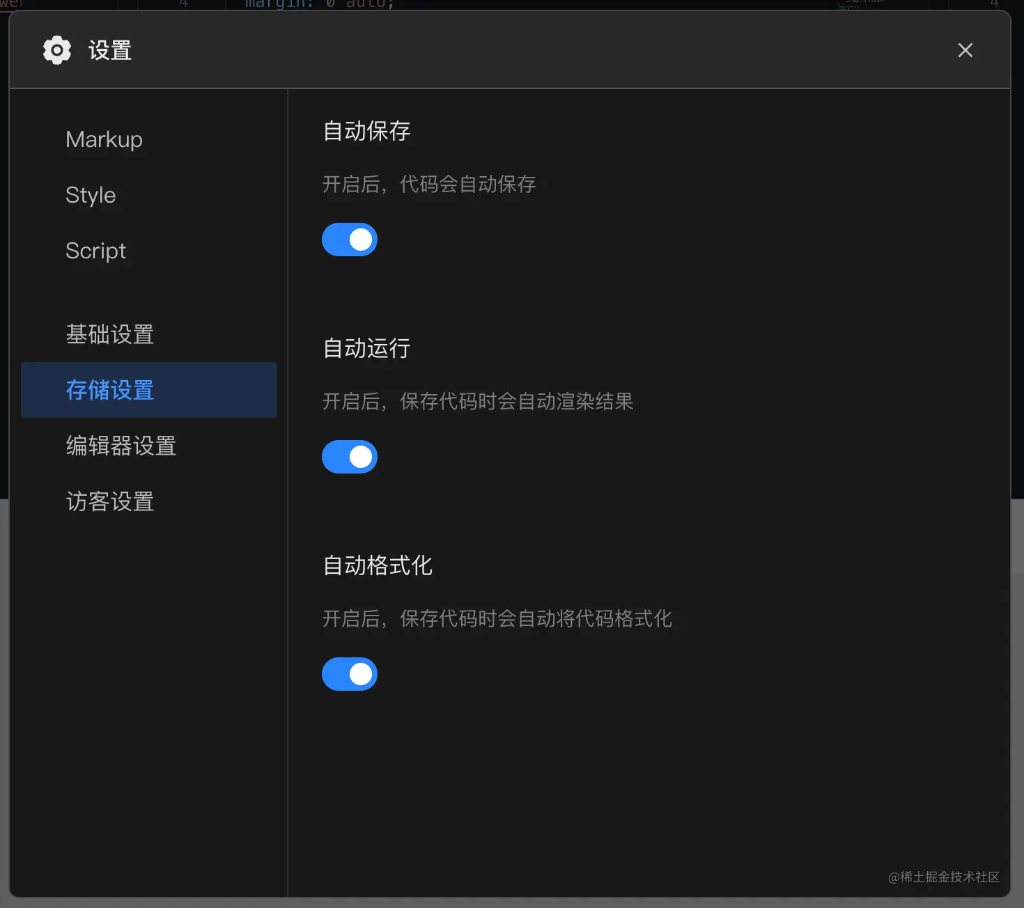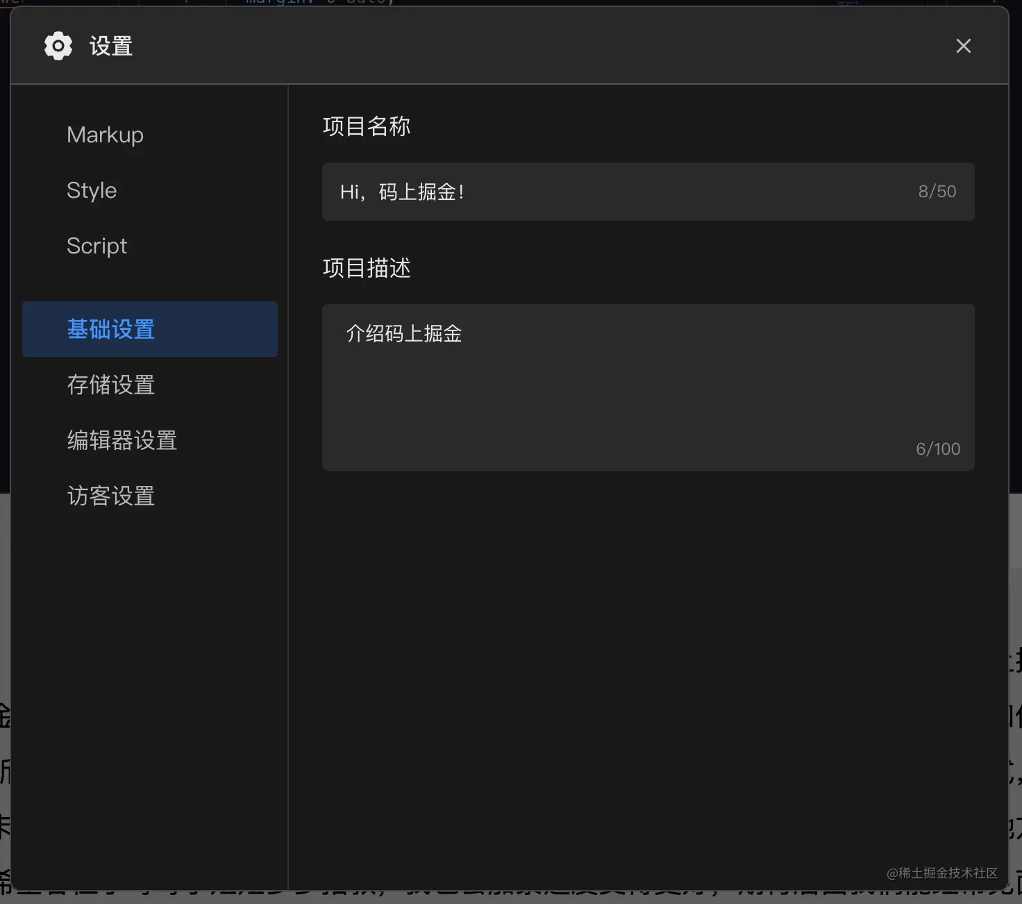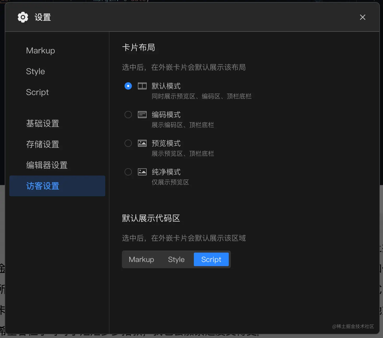 因码上掘金项目在发布并通过审核后,可以插入至掘金文章或分享给他人浏览,所以可在此对客态呈现效果进行设置