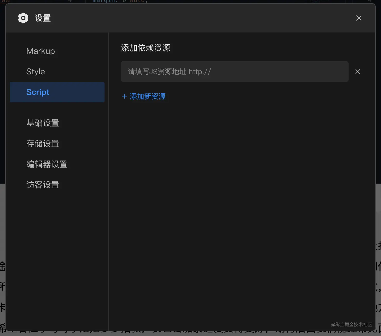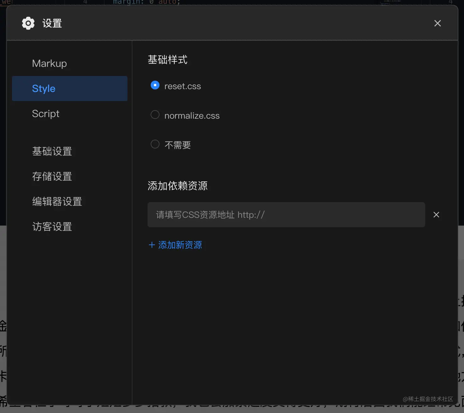 在该版块中可以设置项目的基础样式,同时支持添加多个CSS依赖资源