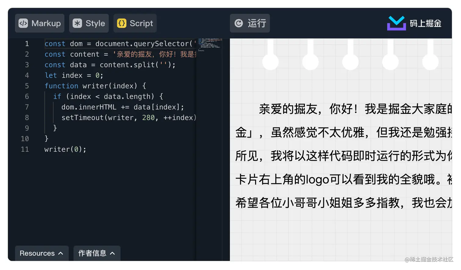 下图为插入到掘金文章中的效果