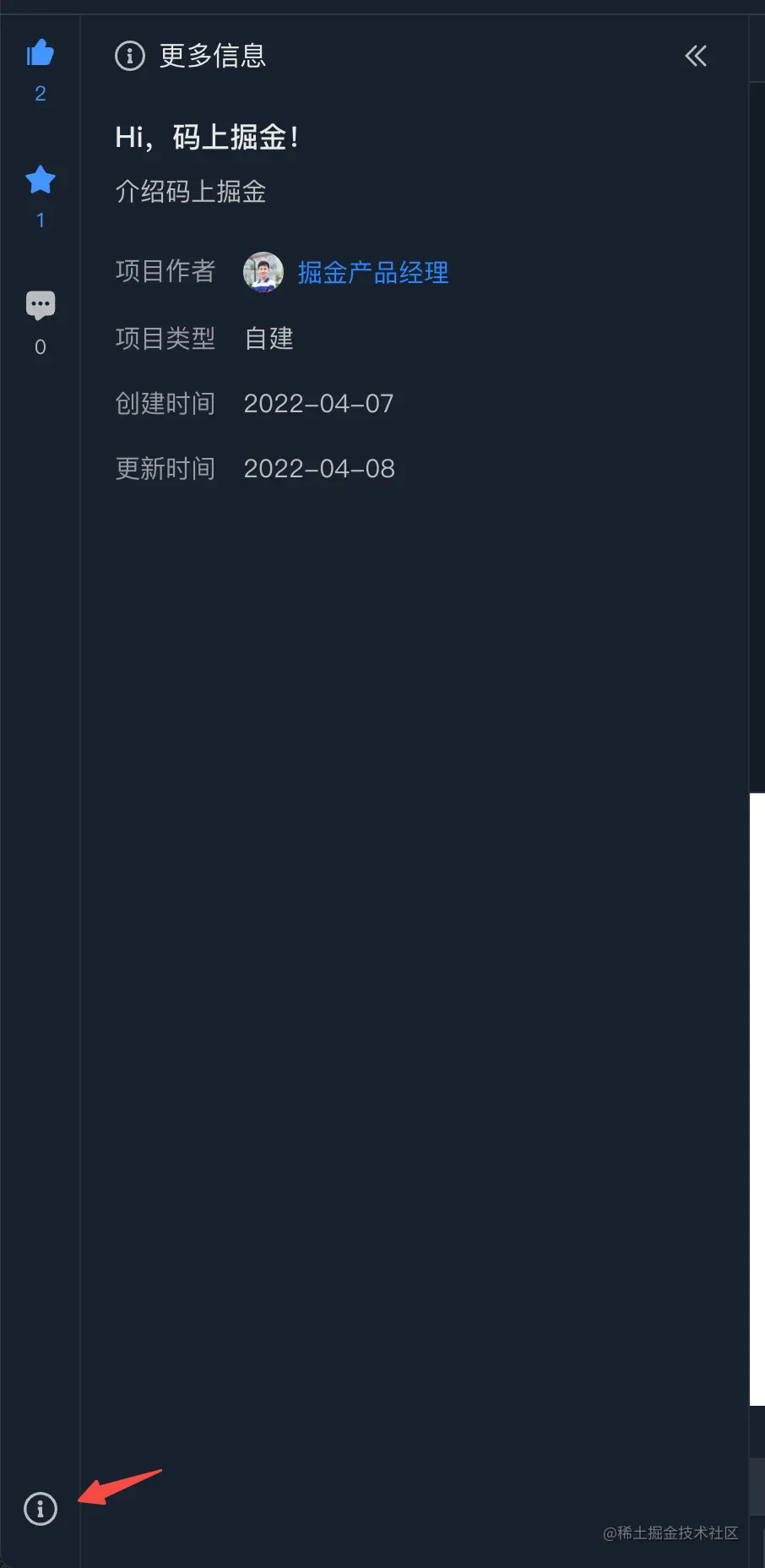 页面左下角为关于该项目的更多信息介绍,点击可展开查看