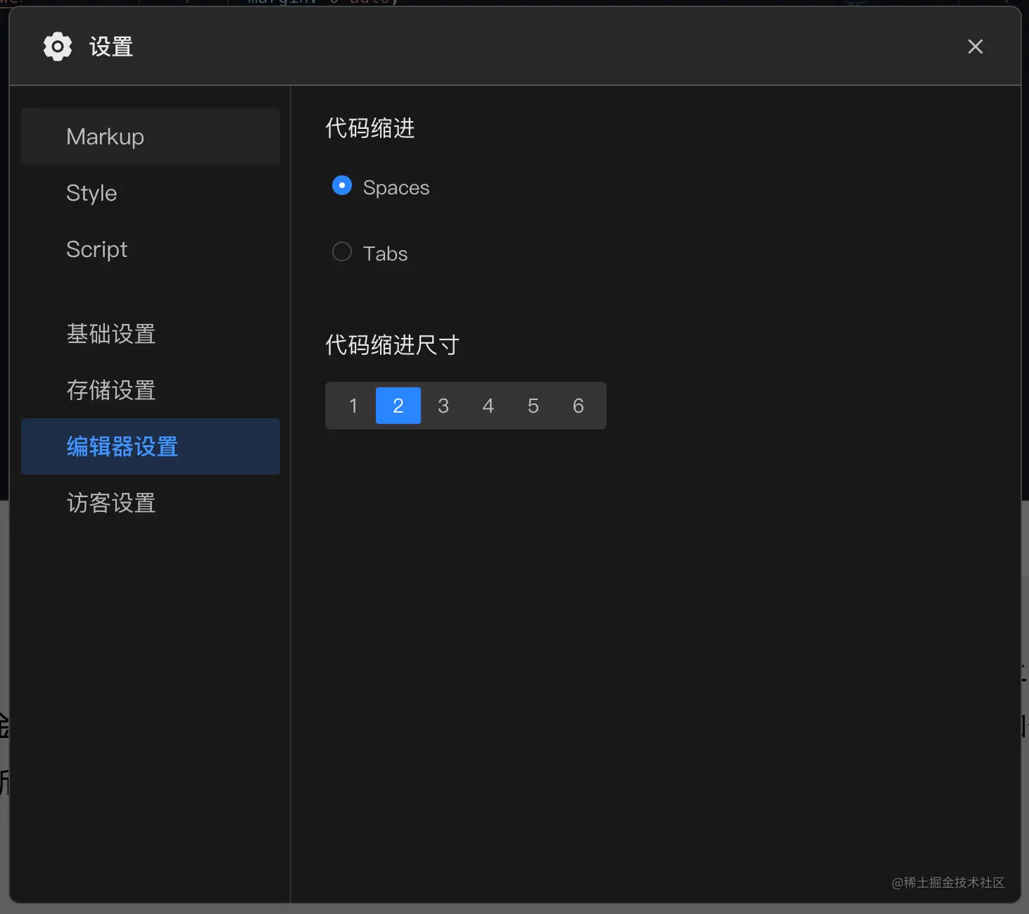 用于设置编辑器常规的缩进信息