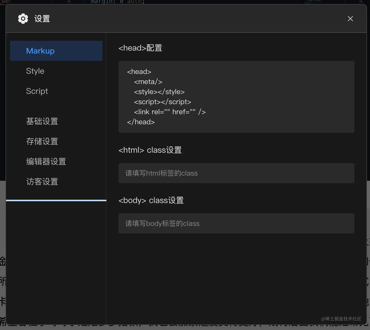 可在该版块设置中完成标签内的元信息以及对于标签设置class