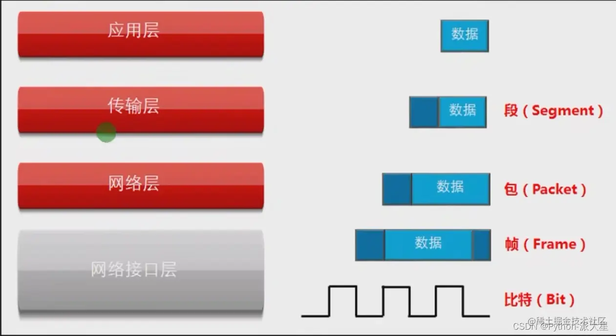 3、TCP/IP根据不同层分别使用了段、包、帧、比特