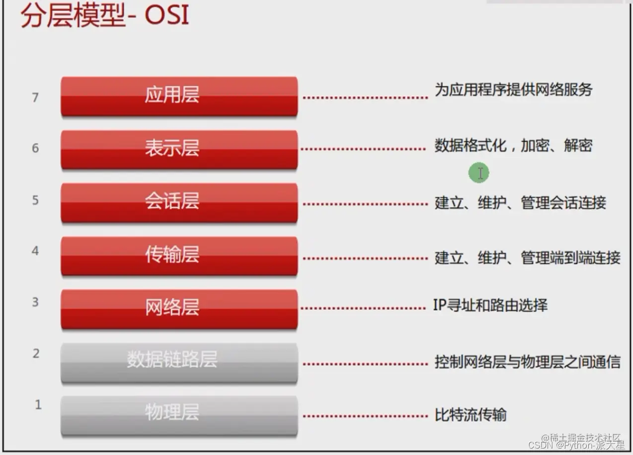 OSI:Open System Interconnect,开放系统互联参考模型,由ISO(国际标准化组织)定义。