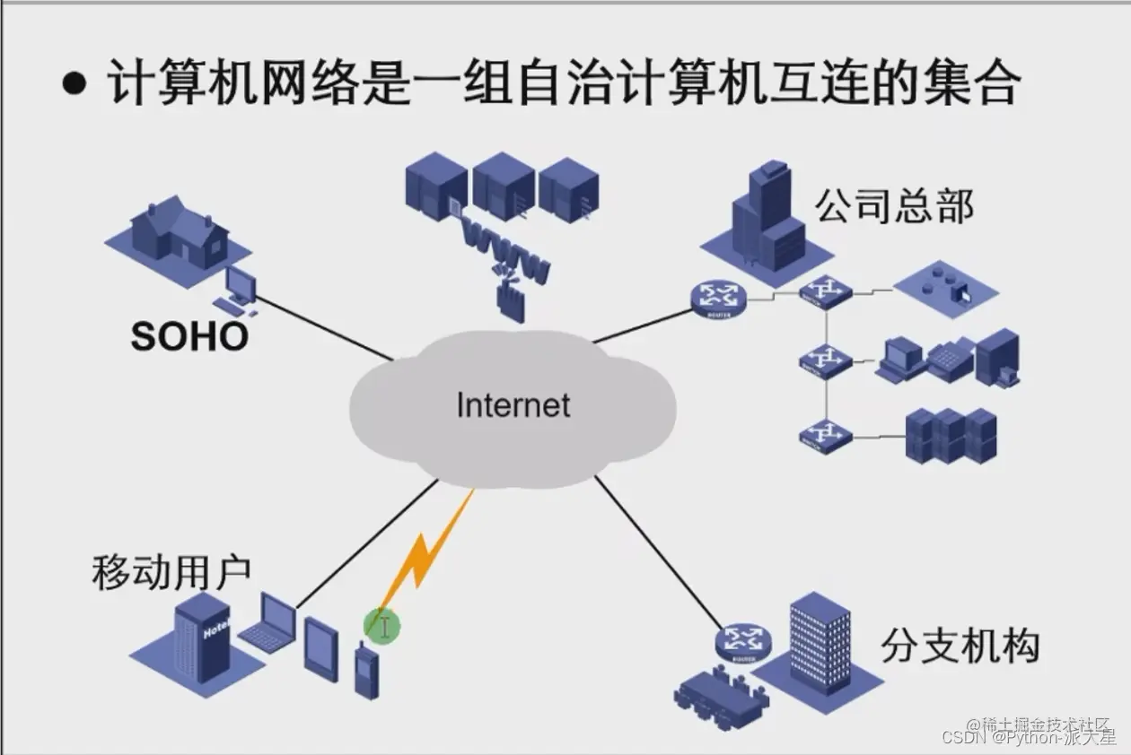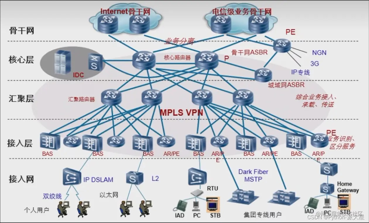 Internet由多个ISP(运营商)组成,例如移动、电信、联通等众多运营商组成。