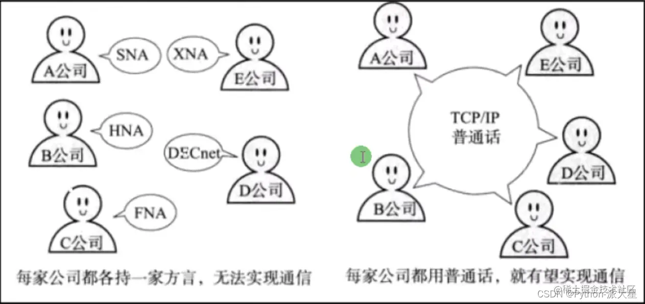 所以想要实现通信,网络设备要用统一的协议例如TCP/IP协议。