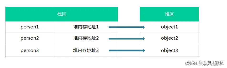 引用类型时按引用访问的,换句话说就是比较两个对象的堆内存中的地址是否相同,那很明显,person1和person2在堆内存中地址是不同的。