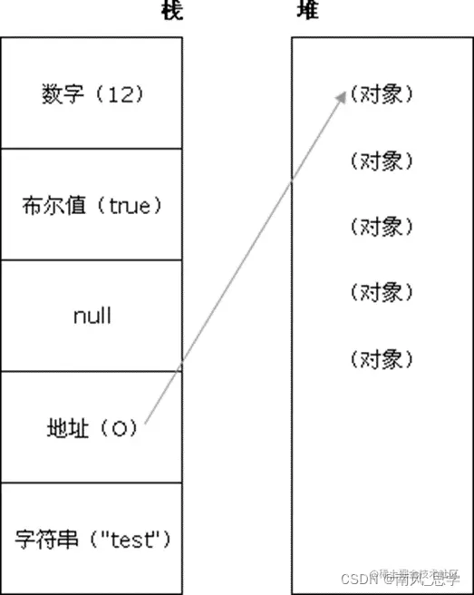准确地说,引用类型的存储需要内存的栈区和堆区(堆区是指内存里的堆内存)共同完成,栈区内存保存变量标识符和指向堆内存中该对象的指针,
