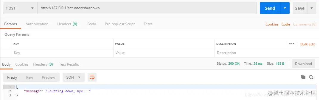 | POST | /actuator/shutdown | 关闭应用,允许应用以优雅的方式关闭(默认情况下不启用) | true |