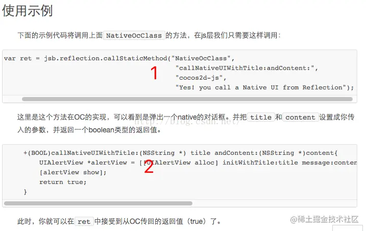 下图:在这里啰嗦一下,可能有的并不知道js 是怎么调用oc的 其实官网上有这个教程 : ( 下面就是官方给的,直接贴图了 )