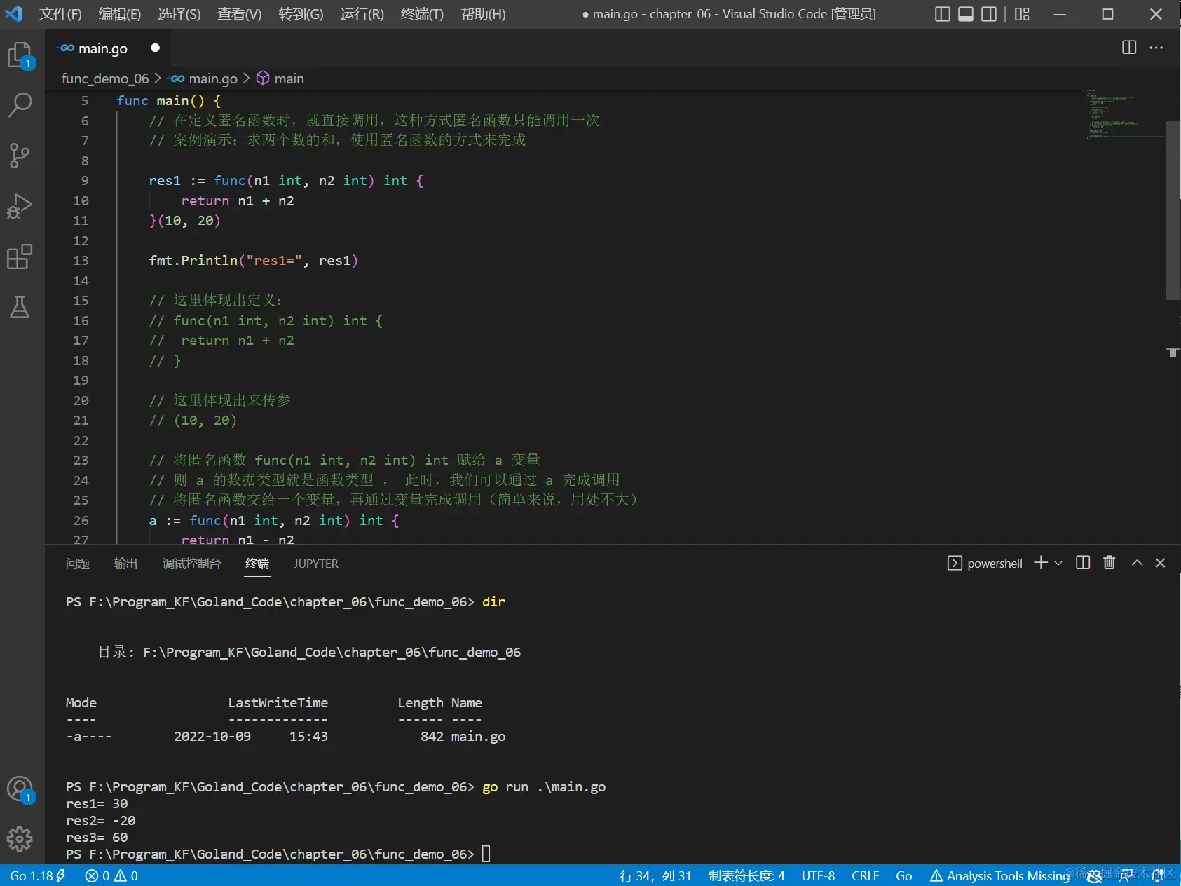 Go 支持匿名函数,如果我们某个函数只是希望使用一次,可以考虑使用匿名函数,匿名函数也可以实现多次调用。