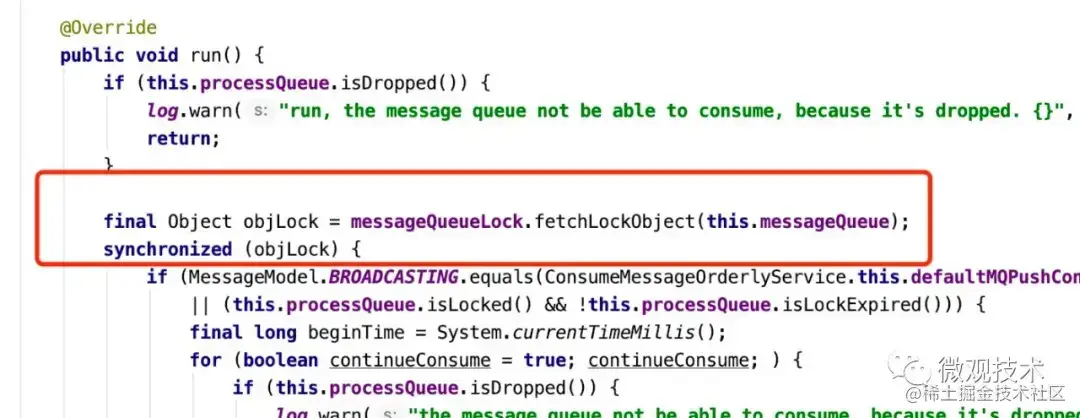 - 从ConcurrentMap中获取messageQueue对应的锁对象