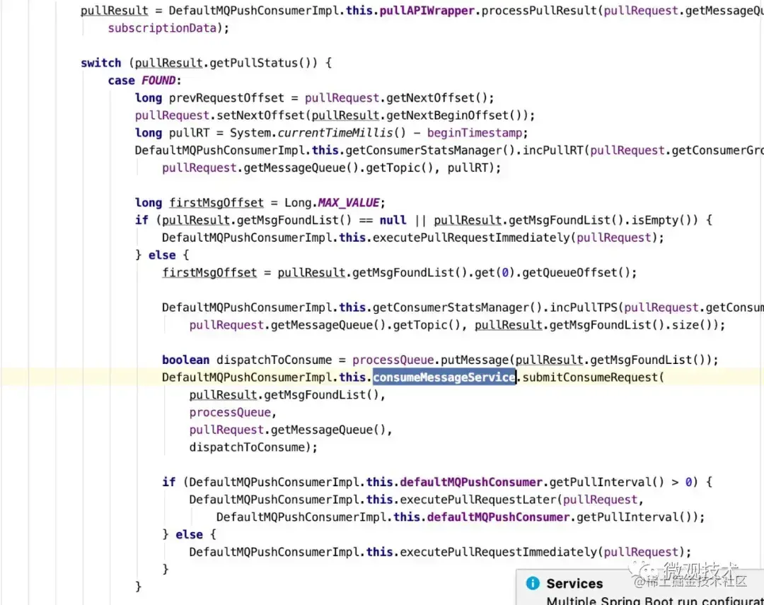 1、 DefaultMQPushConsumerImpl#pullMessage