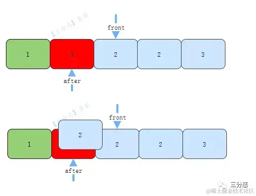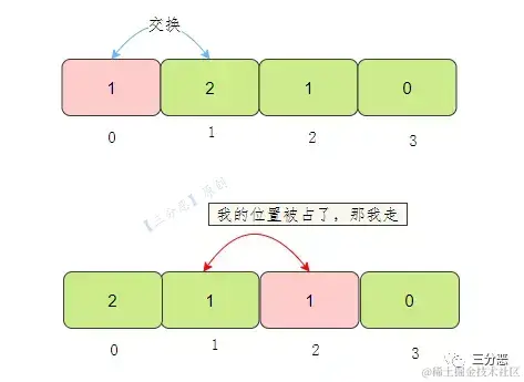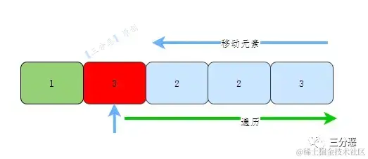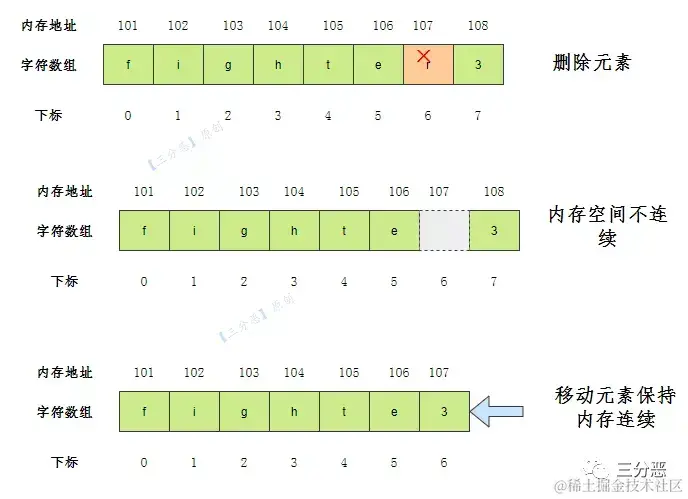 但是删除就麻烦一点,相当于填坑,一个元素被移走,留下的坑,需要其它元素来填上。