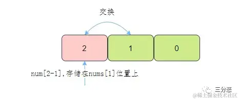 原地置换没法修改数组长度,我们肯定不能nums[i] 存 i 了,我们左移一下,num[i-1]存i。