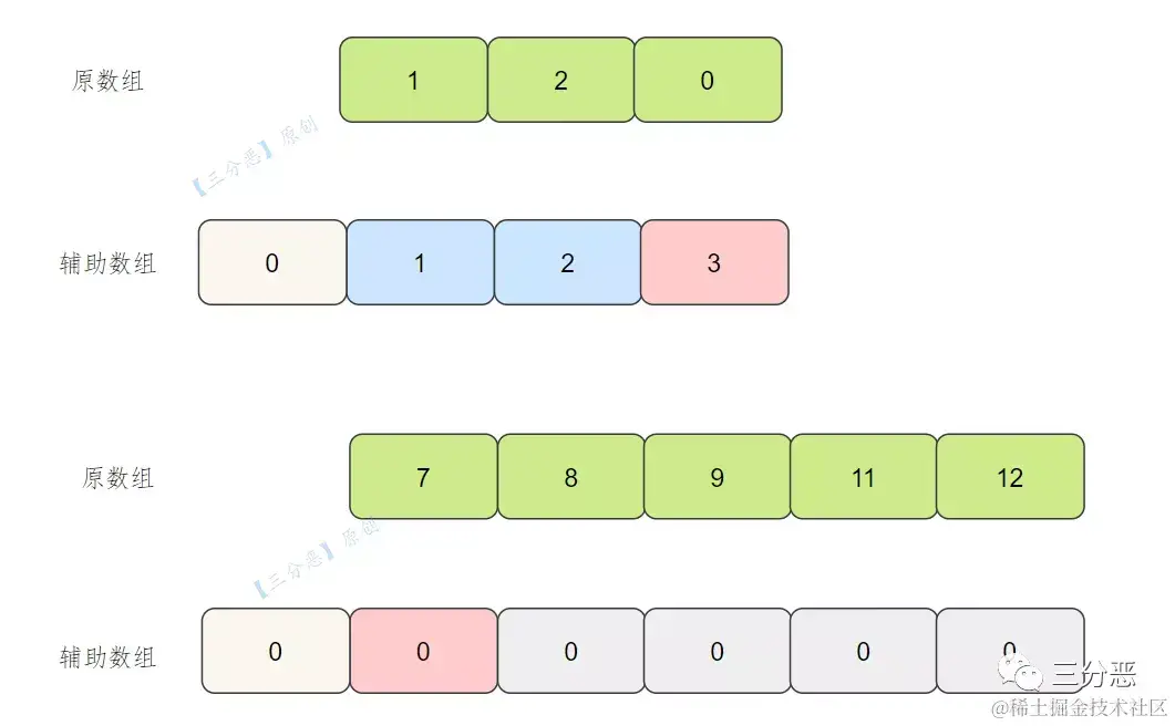 然后遍历辅助数组,发现的第一个坑就是缺失的第一个正数。
