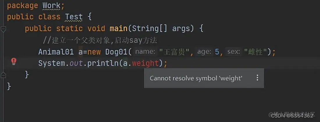 Animal01 a=new Dog01("王富贵",5,"雌性");