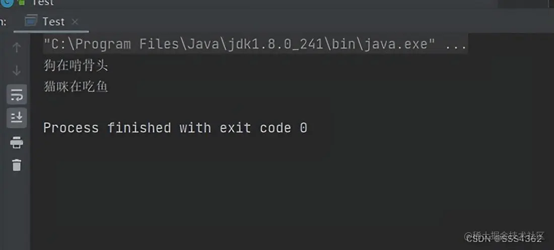 运行看的是右边,若子类 重写了.调用的方法 ,那么用多态时候调用的就是子类的方法,若没有重写,调用的是子类中的父类型特征区里面的方法(继承时从父类那边拷贝一份过来的)