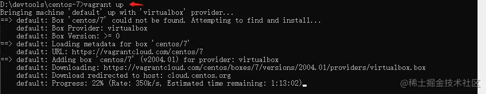 default: Downloading: https://vagrantcloud.com/centos/boxes/7/versions/2004.01/providers/virtualbox.box
