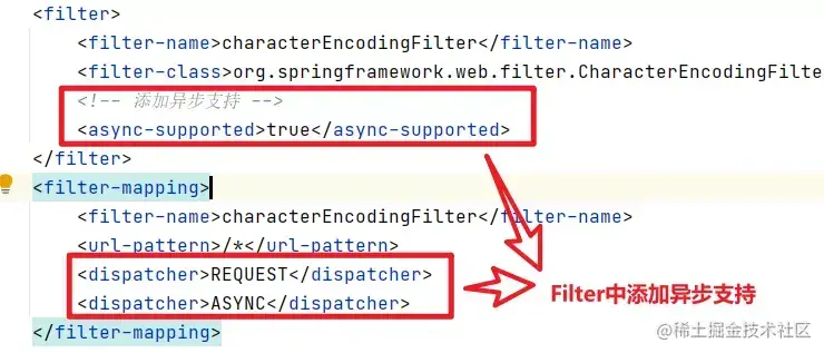 如果我们的异步请求需要经过 Filter 的,那么需要在 web.xml 对这个 Filter 添加异步支持.