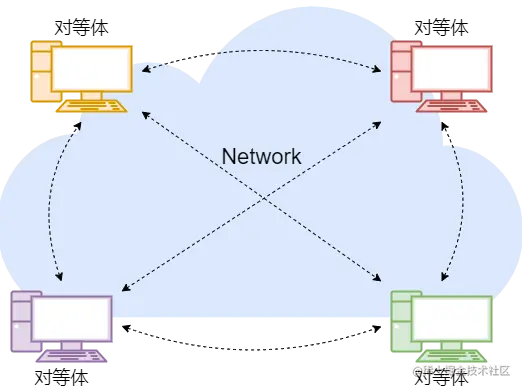 在 P2P 模型中,没有特定的服务器或客户端,这些设备上安装的应用程序,可以在主机间建立对等连接,既可以提供服务,也可以接受服务。通常是大流量的应用程序采用 P2P 模型,比如:下载器等。