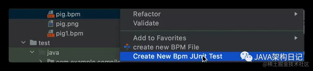 - 在设计好的 bpm 文件右键创建 单元测试