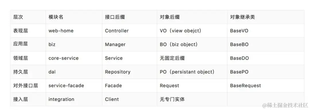 三层架构实现比较简单,很多朋友可能觉得项目分层就应该如此,结果就是往往会出现一大堆的业务逻辑都堆砌在Service层中。而在《阿里巴巴 Java 开发手册 》中将原来的三层架构进一步细化,添加了Manager通用业务处理层。