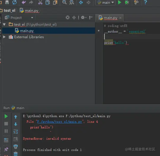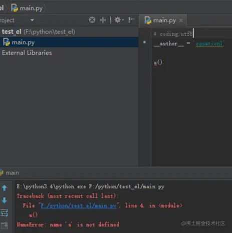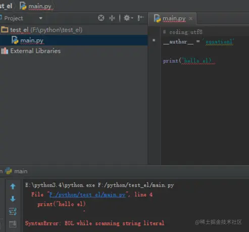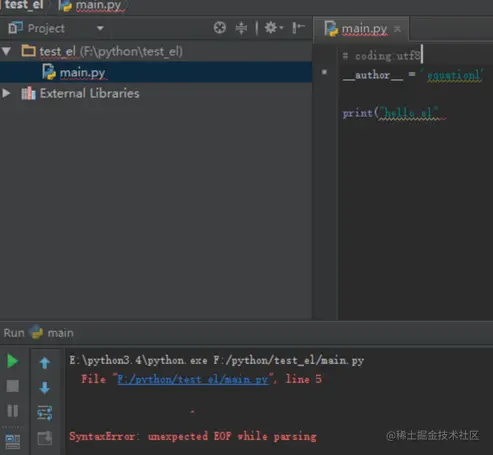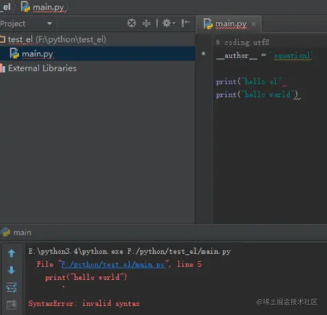 该句指出了出现错误的文件以及错误的位置,在这里所指即为F盘下的 python/test_el 文件夹下的 main.py 文件的第5行有错误。(对于一般的IDE或者编辑器都会在编辑界面的左侧显示文件中的行数,如果没有显示,大多数编辑器都支持使用快捷键 Ctrl+G 跳转到指定行)