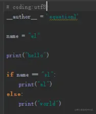 可以看到在上图中,if 的下一行前面多了四个空格,而 else 并没有空格,但 else 的下一行的前面却又有4个空格,这表示 print(“el”) 语句属于 if “管辖”,而 else 并不属于,但 print(“world”) 属于 else 管辖。