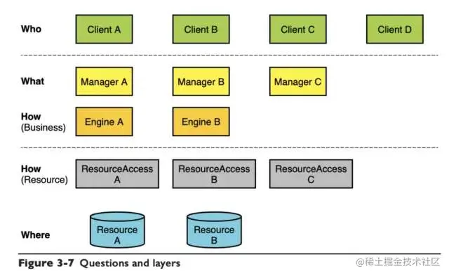 这样的分层每一次都是在解决 Who、What、How、Where 这四个问题: