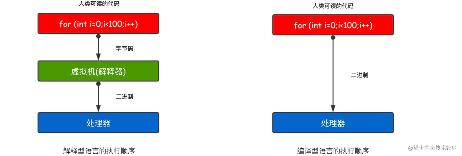 同C,C++一样,Go语言也是编译型的语言,它直接将人类可读的代码编译成了处理器可以直接运行的二进制文件,执行效率更高,性能更好。