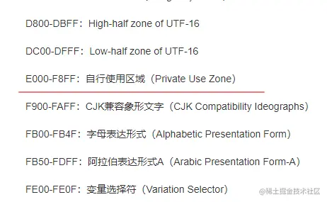 如果我们不自定义图标的Unicode,那么会默认从E001开始,在Unicode中,E000-F8FF的区间没有定义字符,用于给我们自行使用private-use-area: