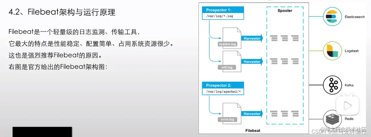 filebeat主要由两个组件构成:prospector(探测器)和harvester(收集器)。这类组件一起协作完成filebeat的工作。