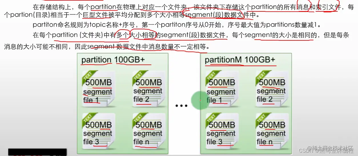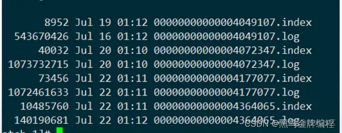 segment数据文件有两个部分组成,分别index file和data file,此两个文件一一对应,成对出现,后缀“.index”和".log" 分别表示为segment索引文件和数据文件。