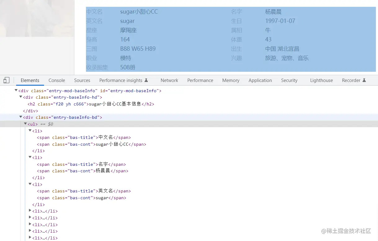 li标签,然后提取对应的信息,对应的选择器为:.entry-baseInfo-bd li -