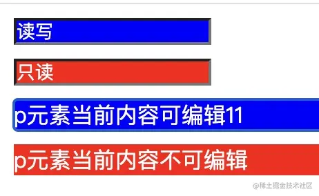 - 输入框元素和p元素可读写状态设置背景是蓝色;