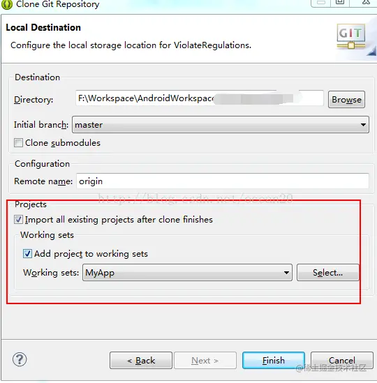 四、这步很重要,需要勾选import all existing projects after clone finishes, 这样clone完成后工程就自动导入eclipse了,是不是很方便啊。