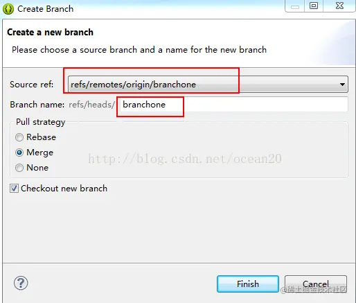 3.上一步中本地创建的分支branchone是基于远程的branchone创建的