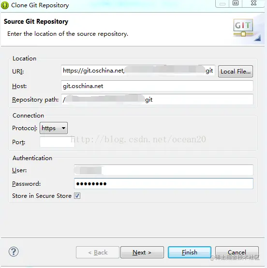 二、输入远程资源库相关信息,选择Storein Secure Store