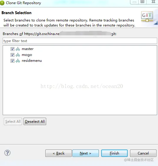 三、勾选从远程需要克隆到本地的分支