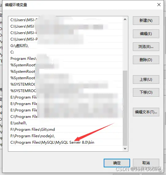step4:将你的MySQL安装路径下的bin目录复制粘贴进里面,即可,注意上图为我的安装目录位置。